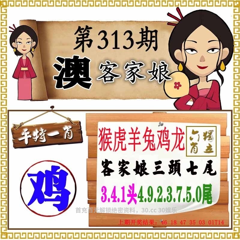 | 313期:客家娘心水 313期:【客家娘必中六肖】猴虎羊兔鸡龙 313期:【客家娘三头七尾】134头-2374950尾 |