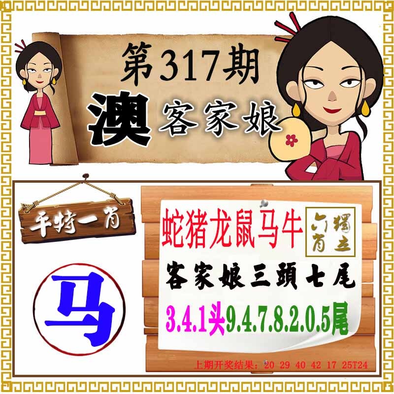 | 317期:客家娘心水 317期:【客家娘必中六肖】蛇猪龙鼠马牛 317期:【客家娘三头七尾】134头-7820945尾 |